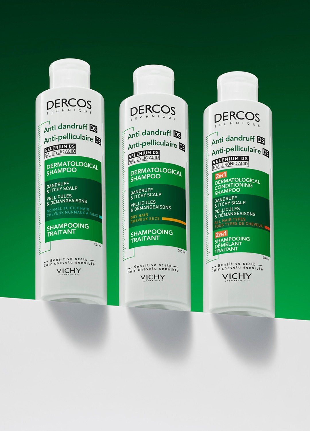La gamma Dercos Anti-forfora garantisce la miglior efficacia per il cuoio capelluto e la fibra del capello, senza comprometterre il benessere e il comfort cutaneo, adatto anche per la pelle sensibile.
