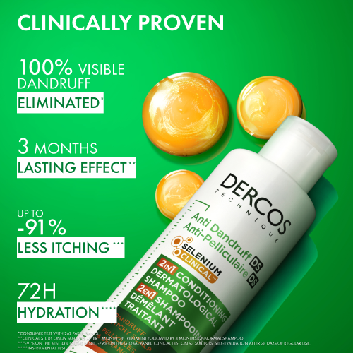 Prova la stessa efficacia dello shampoo Antiforfora Dercos DS, adesso in una formula che si prende maggiore cura dei tuoi capelli: