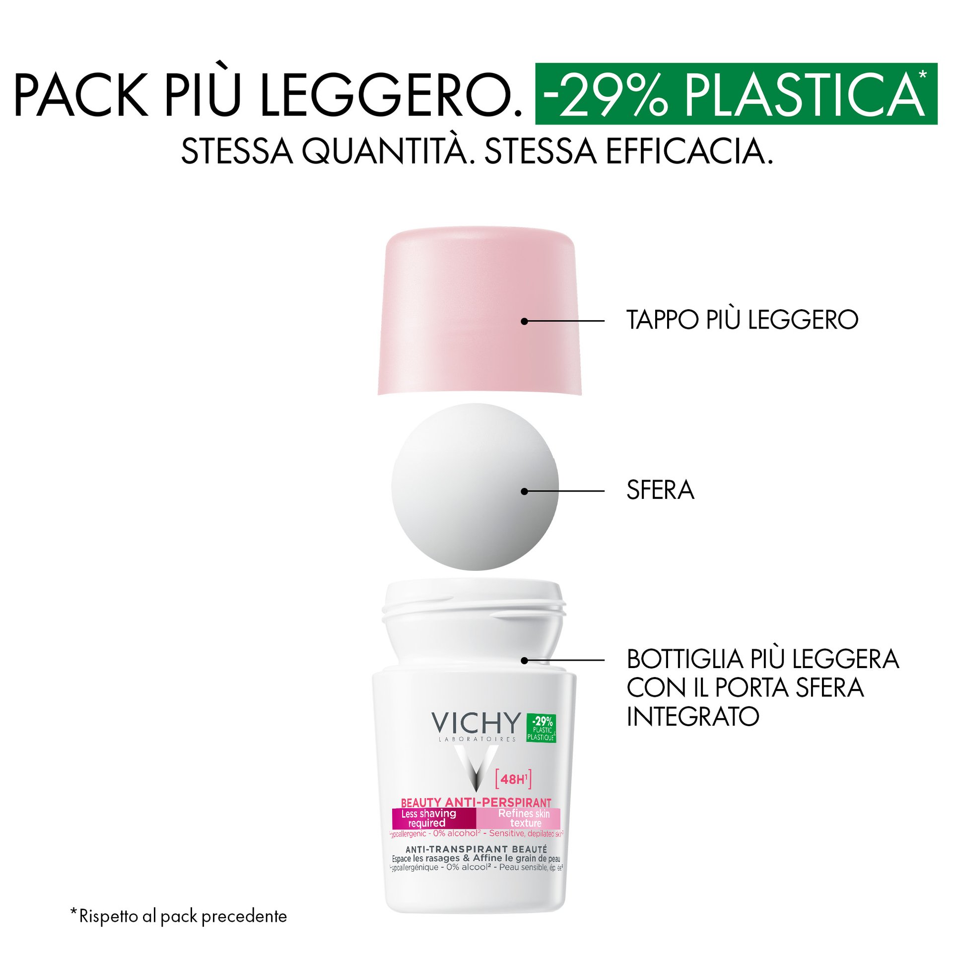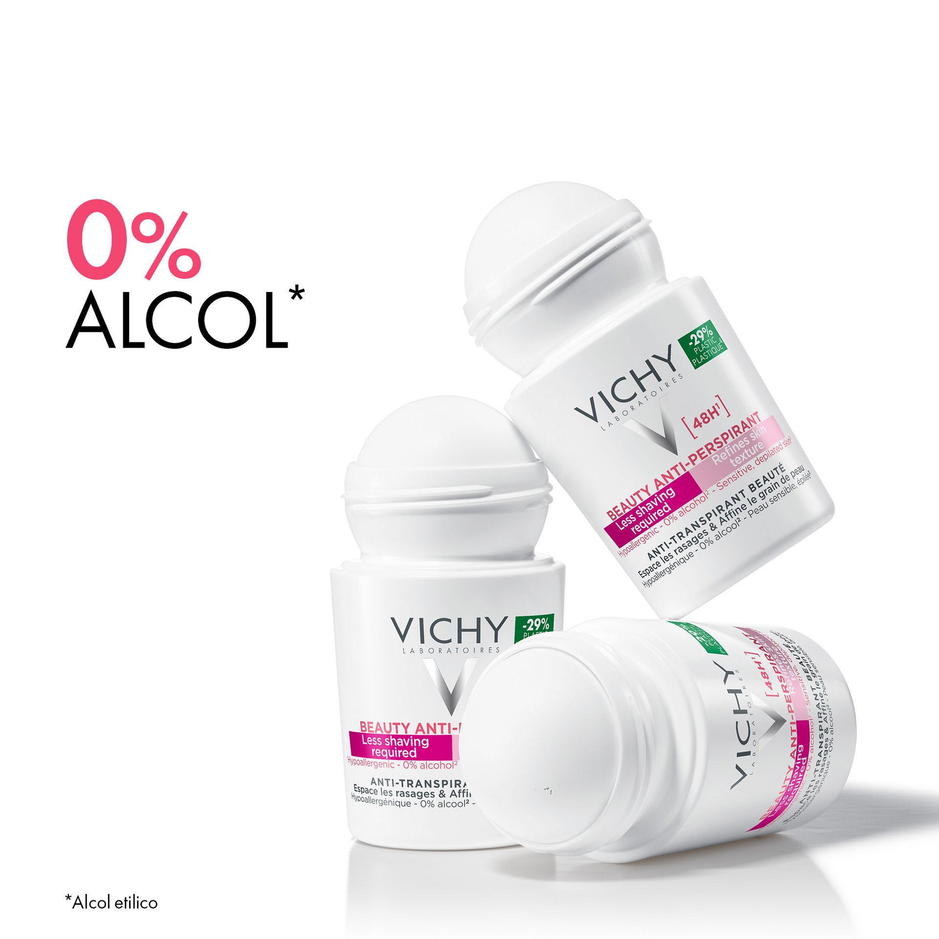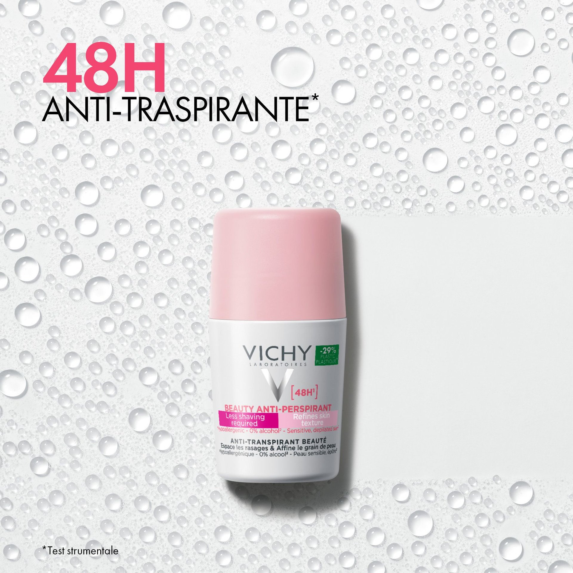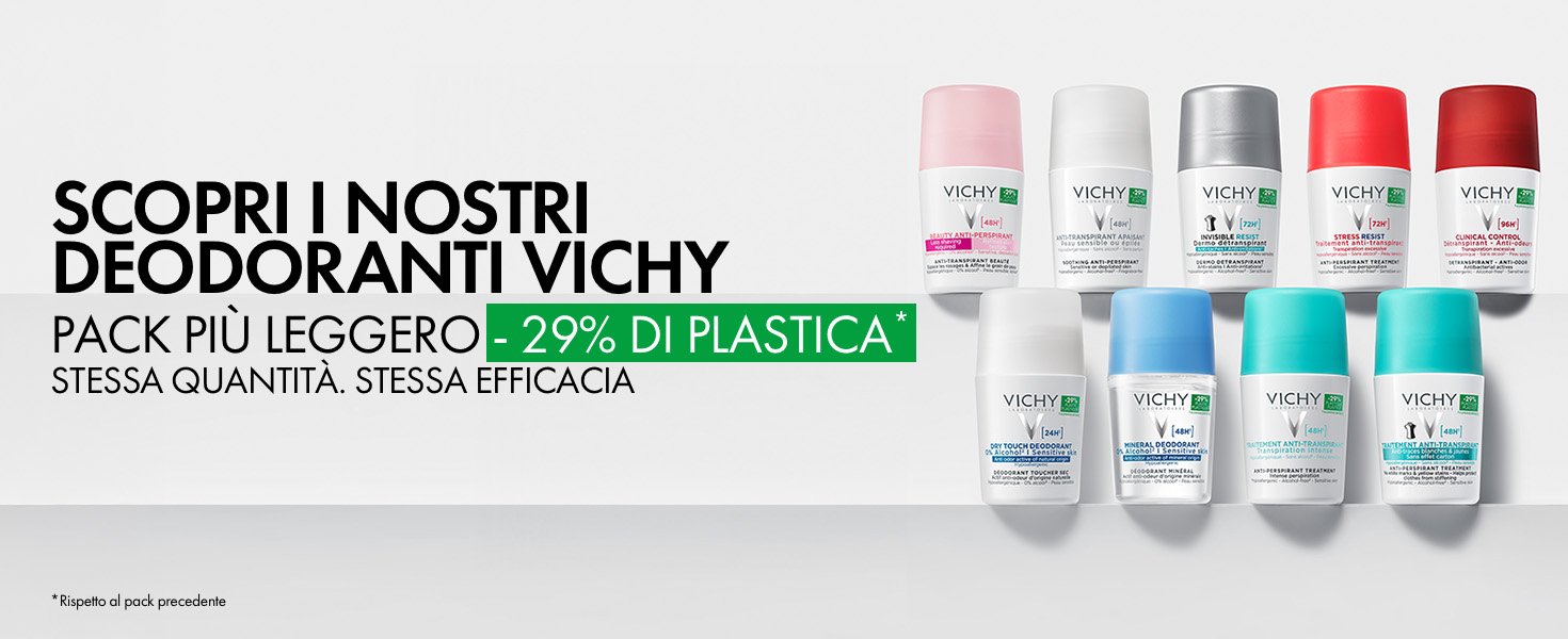 - Il Trattamento di Bellezza Antitraspirante 48H Vichy offre 48 ore di protezione contro sudore e odori, prendendosi cura della pelle e affinando la sua texture. Testato sotto controllo dermatologico, su pelle sensibile. Formula ipoallergenica. Senza alcol*.