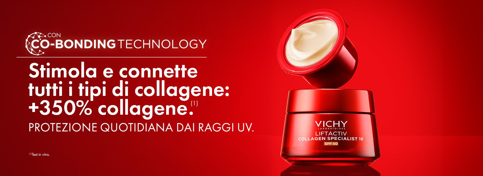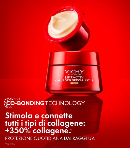 15 anni di ricerca, più di 8900 molecole analizzate e 25 pubblicazioni scientifiche, Vichy introduce una rivoluzione nel mondo del collagene, la Co-Bonding Technology. Questa tecnologia stimola e connette tutti i tipi di collage per una matrice del collagene rinforzata*.