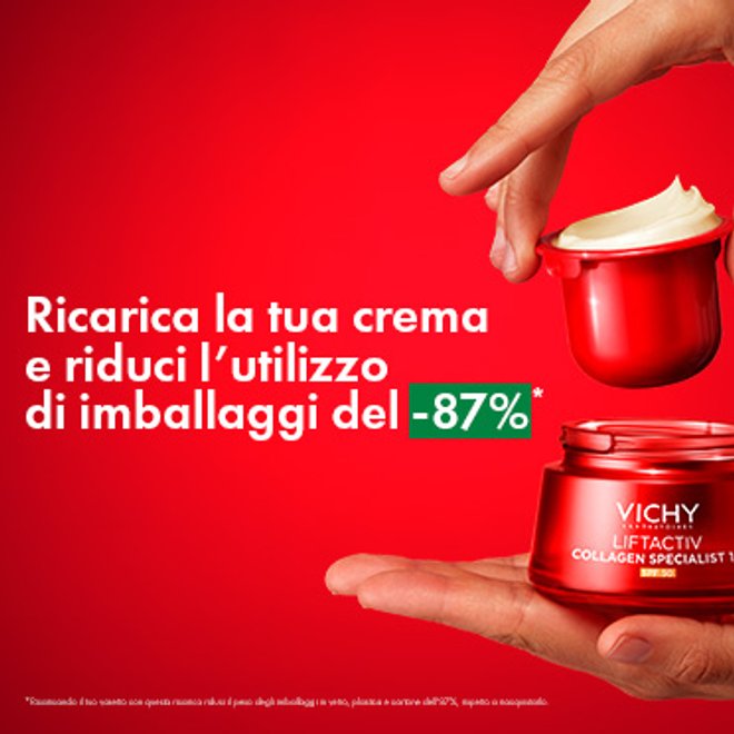*Ricaricando il tuo vasetto con questa ricarica riduci il peso degli imballaggi in vetro, plastica e cartone dell'87%, rispetto a riacquistarlo.