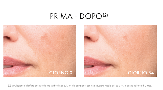 Agisce sulle macchie grazie a una formula arricchita con Niacinamide B3 e Melasyl.